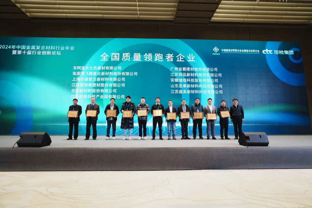 12月19日,金屬復(fù)合裝飾材料行業(yè)年會暨第十屆行業(yè)創(chuàng)新論壇在寧波市順利召開。大會由中國建筑材料聯(lián)合會金屬復(fù)合材料分會(以下簡稱金屬分會)、中國國檢測試控股集團(tuán)股份有限公司(以下簡稱國檢集團(tuán))主辦。分會副理事長單位、常務(wù)理事單位、專家、學(xué)者和企業(yè)家代表參加了本次會議,雅泰實(shí)業(yè)集團(tuán)作為副理事長單位應(yīng)邀出席。