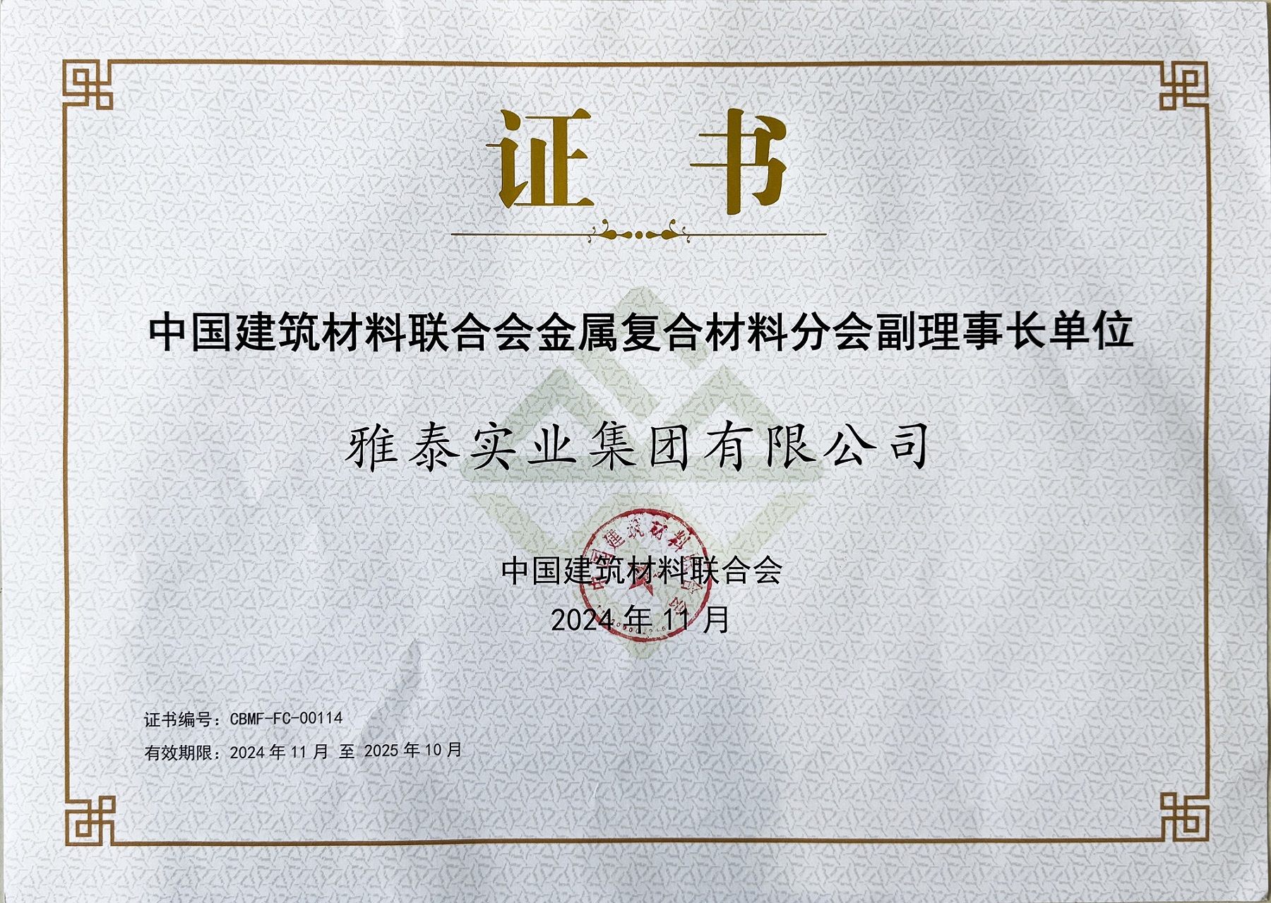 同時,雅泰實(shí)業(yè)集團(tuán)作為幕墻行業(yè)優(yōu)秀的國內(nèi)老字號品牌,也長年擔(dān)任著中國建筑材料聯(lián)合會理事、金屬復(fù)合材料分會副理事長等角色。