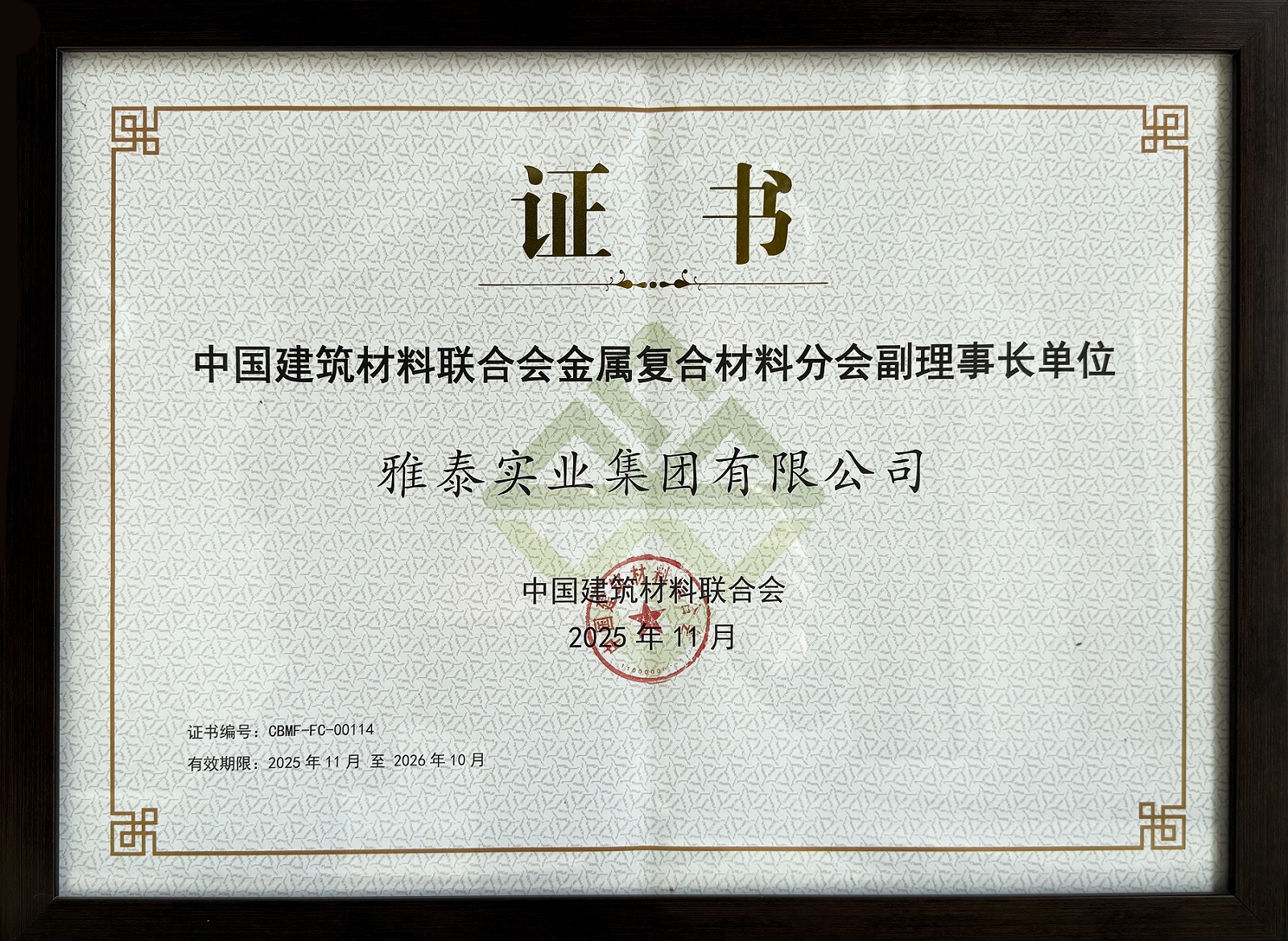 同時,雅泰實業(yè)集團作為幕墻行業(yè)優(yōu)秀的國內老字號品牌,也長年擔任著中國建筑材料聯合會理事、金屬復合材料分會副理事長等角色。