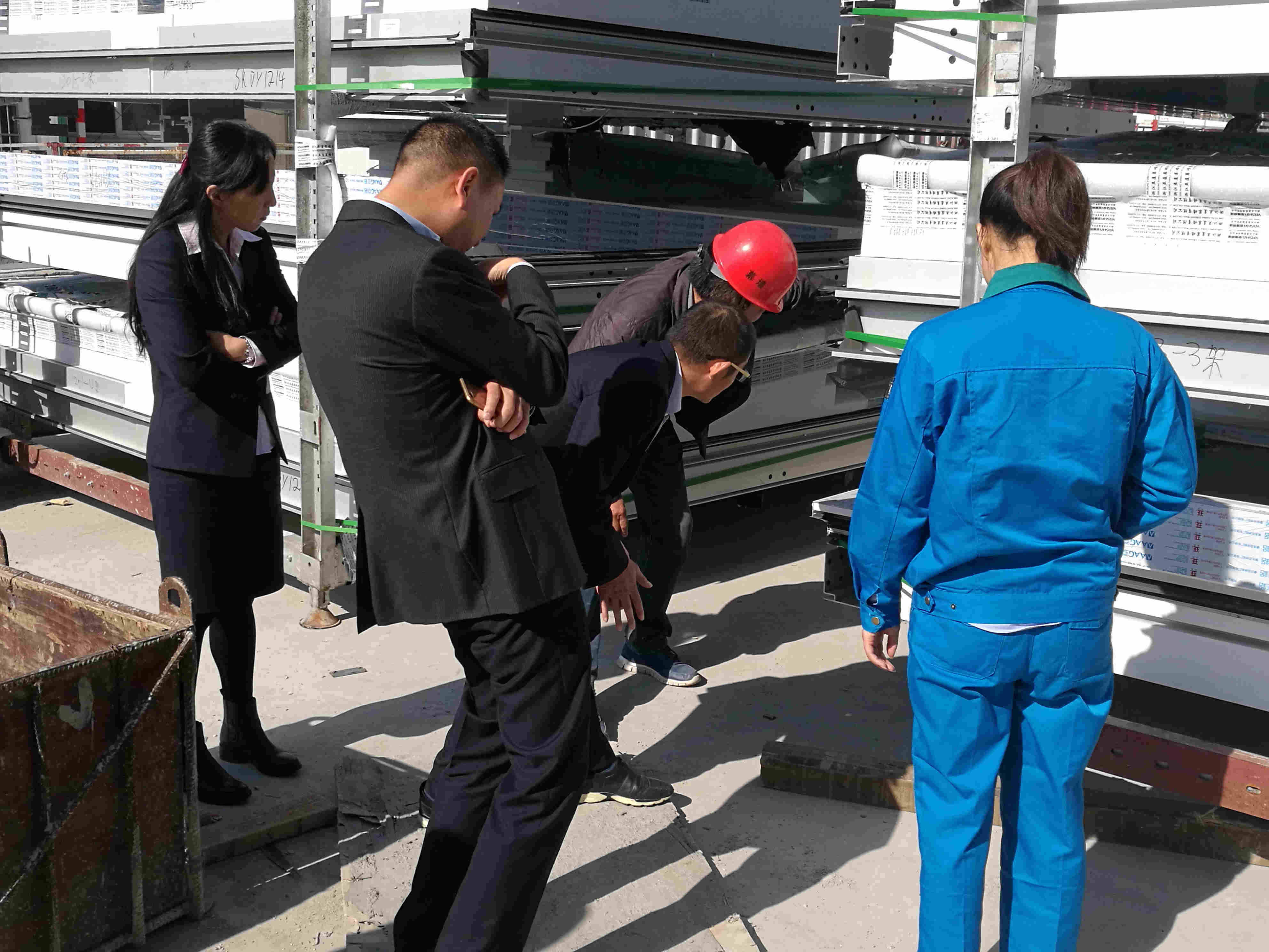 隨行人員現(xiàn)場檢視已供應(yīng)的鋁單板產(chǎn)品