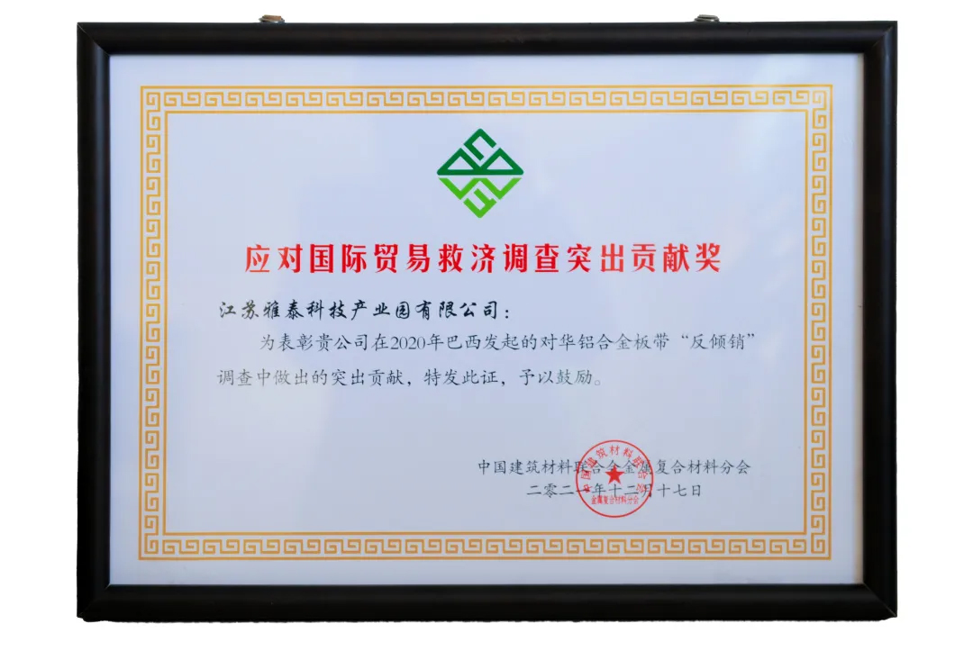 2021年,受各種不可抗力因素影響,國際市場貿(mào)易摩擦不斷,雅泰外貿(mào)形勢略為嚴(yán)峻,但雅泰通過強大的國家背書,尋求各方支持幫助、積極應(yīng)對,成功打贏反傾銷一案,大會特別頒發(fā) “應(yīng)對國際貿(mào)易救濟調(diào)查突出貢獻獎” 。