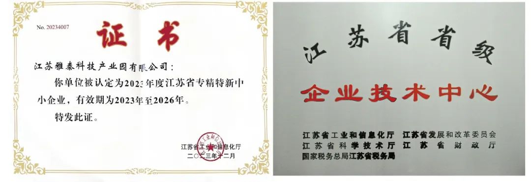 江蘇雅泰喜獲“江蘇省專精特新”、“江蘇省企業(yè)技術(shù)中心”兩項(xiàng)省級(jí)資質(zhì)榮譽(yù),標(biāo)志著江蘇雅泰科學(xué)管理體系、技術(shù)研發(fā)能力邁上了更高的臺(tái)階!